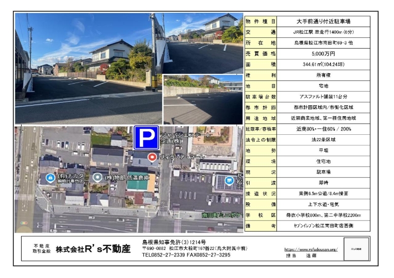 松江市南田町エリアで販売中の土地情報